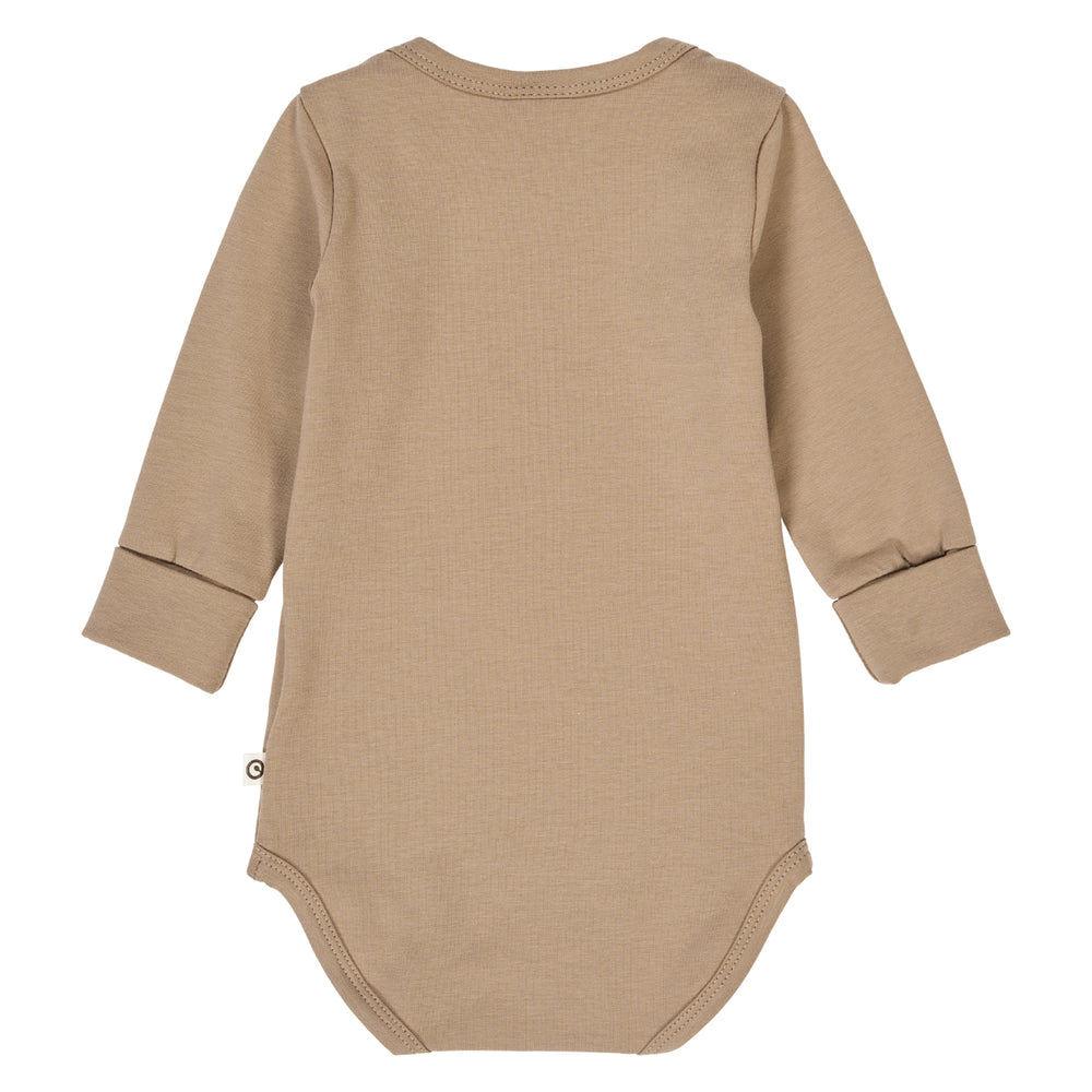 Really soft long sleeve body with american closure at the neck opening and snap-buttons at the bottom.