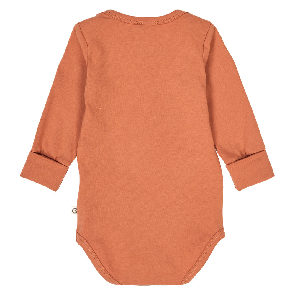 Really soft long sleeve body with american closure at the neck opening and snap-buttons at the bottom.