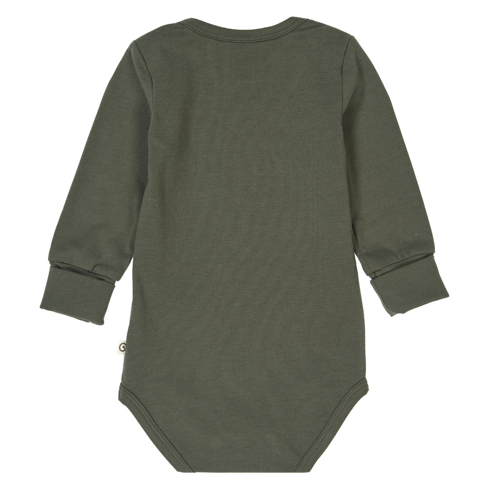 Really soft long sleeve body with american closure at the neck opening and snap-buttons at the bottom.