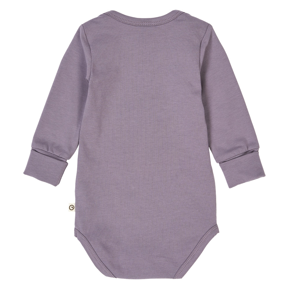 Really soft long sleeve body with american closure at the neck opening and snap-buttons at the bottom.