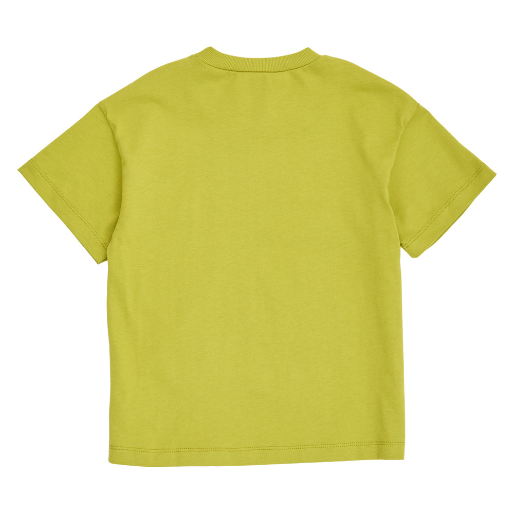 The T-shirt is wide in fit and has a drop shoulder which means that the shoulder seam is placed further down the arm.