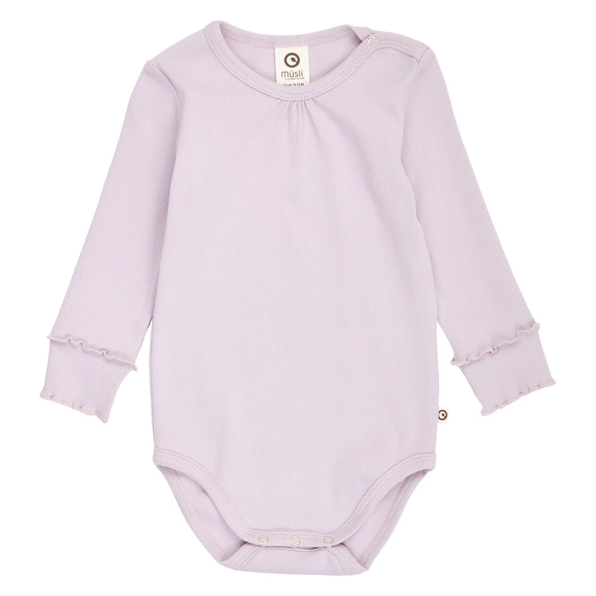 The body has fine ruffled details at the end of the sleeves and is sweet and feminine in its expression.