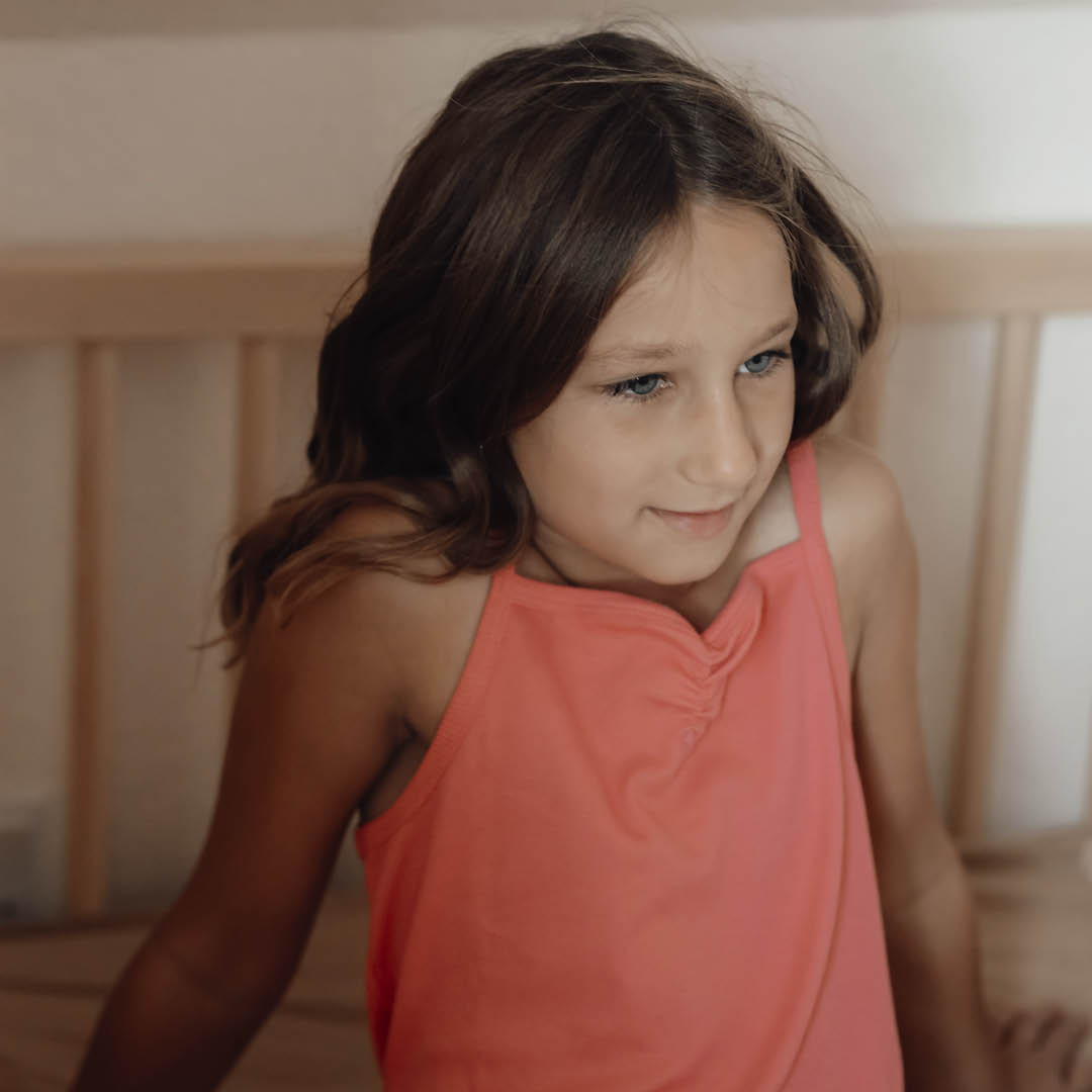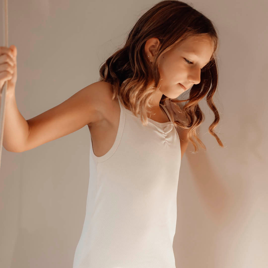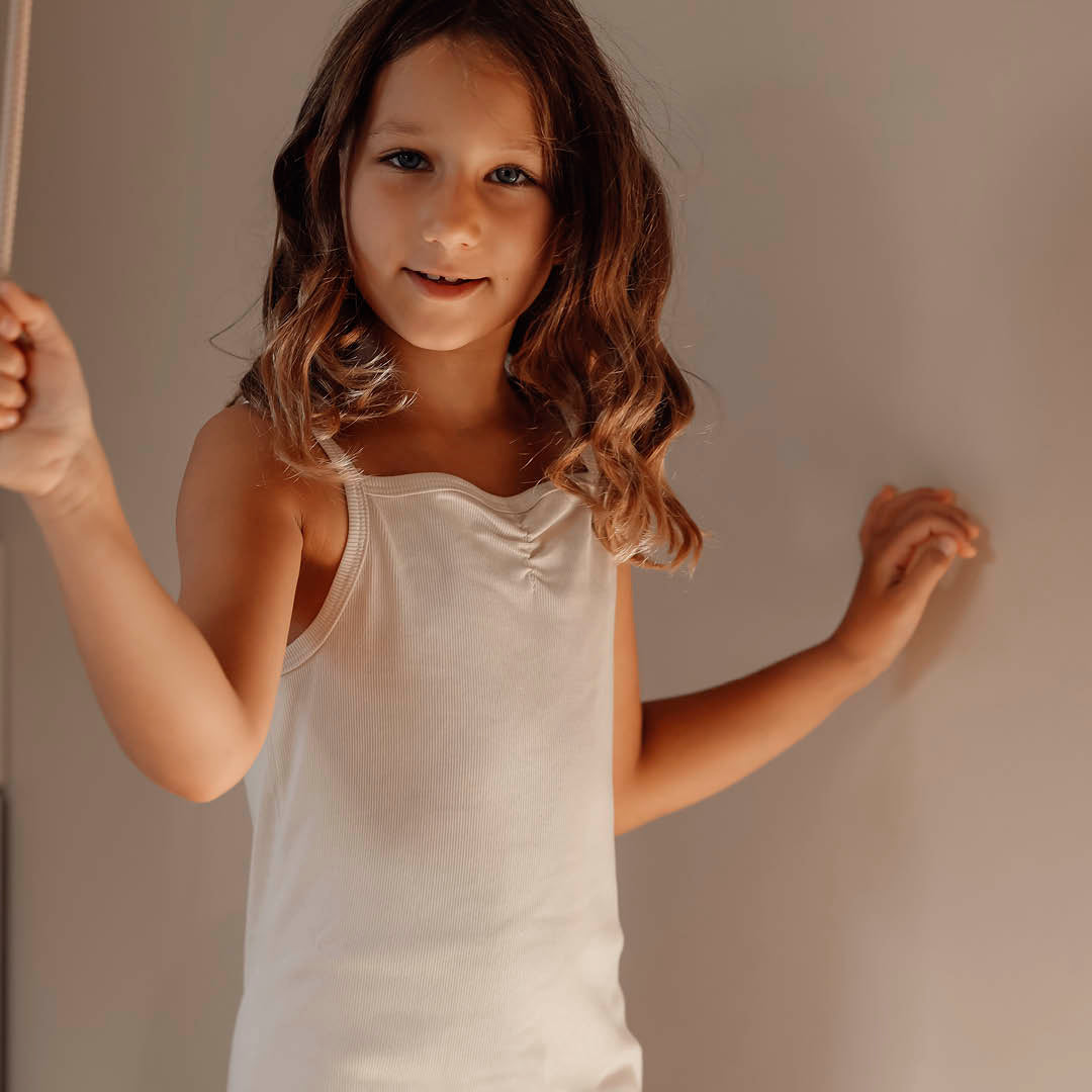 A set consists of 2 parts, an undershirt with a cute detail on the front and narrow straps.