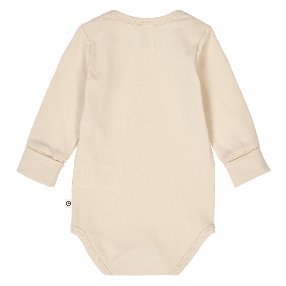 Really soft long sleeve body with american closure at the neck opening and snap-buttons at the bottom.