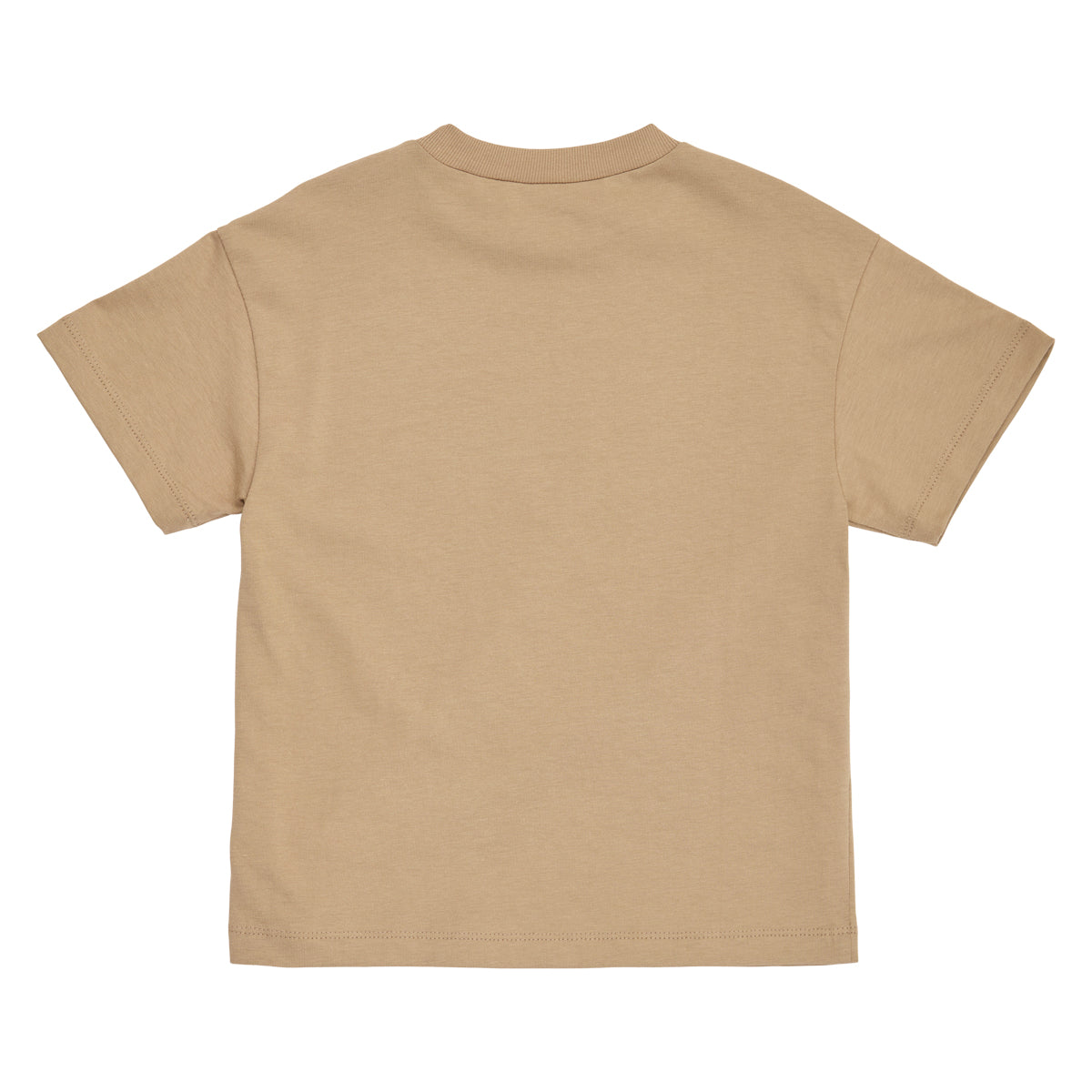 The T-shirt is wide in fit and has a drop shoulder which means that the shoulder seam is placed further down the arm.