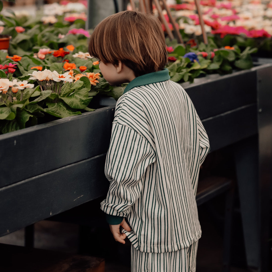 Cool striped long-sleeved polo T-shirt,