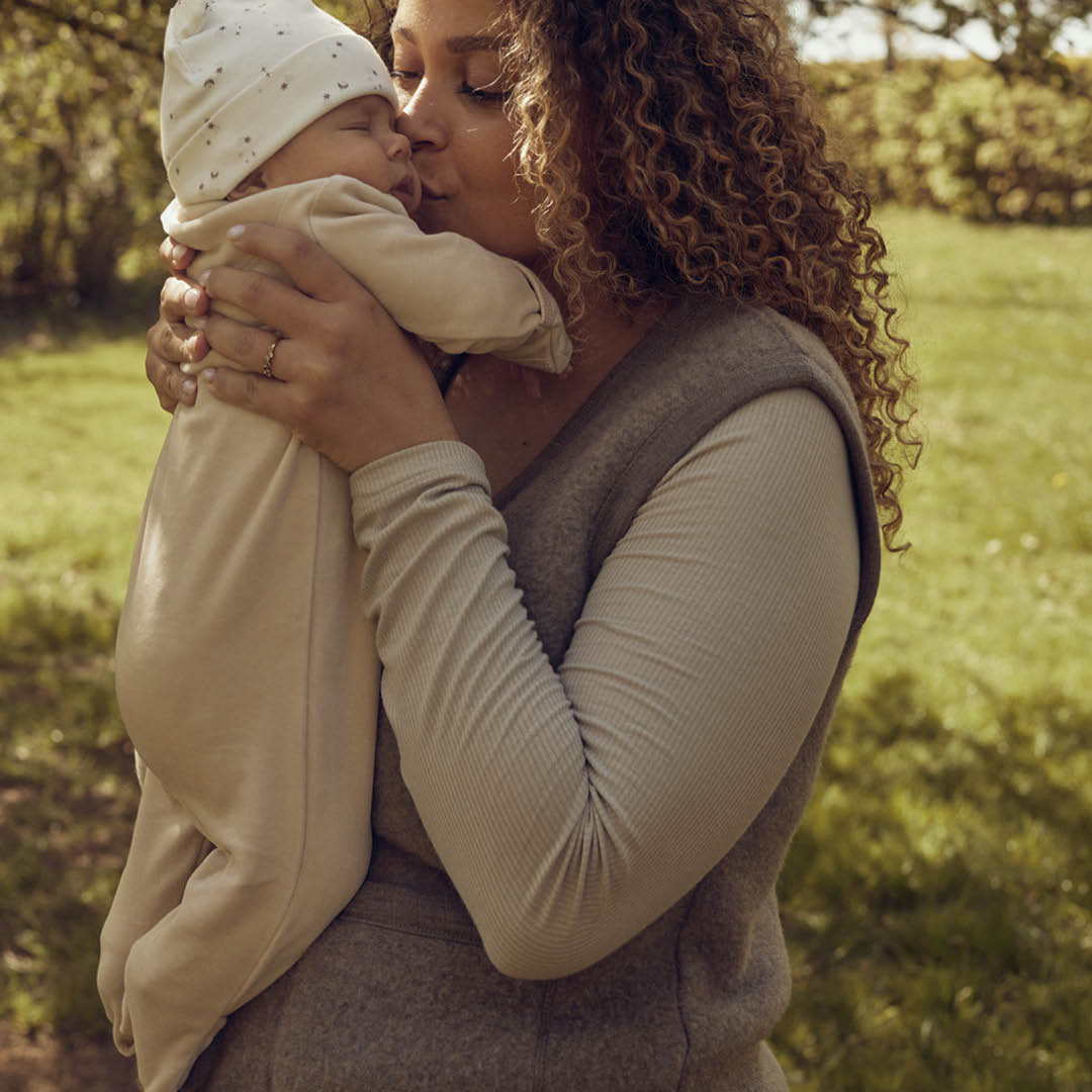 The bodysuit is made from size 44 -74 and therefore fits very small babies.