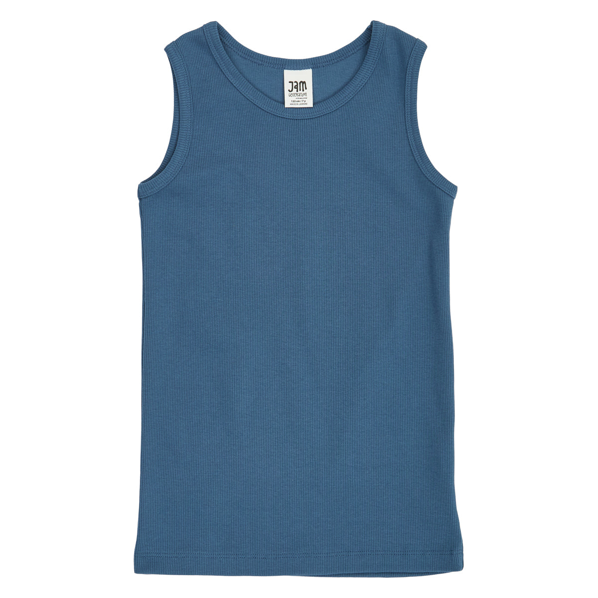 A set consists of 2 parts, an tank top and boxer shorts with elastic at the waist