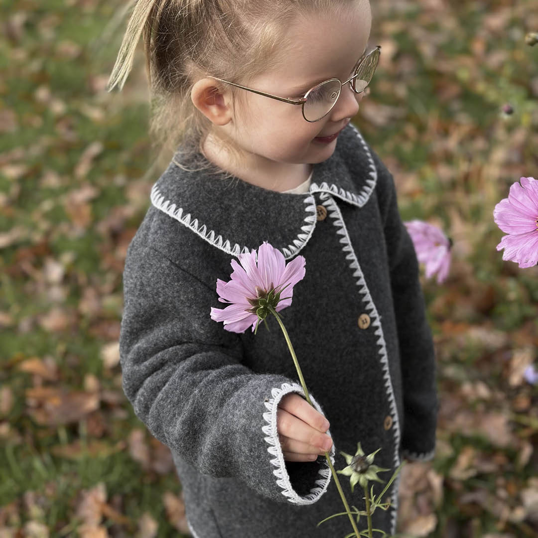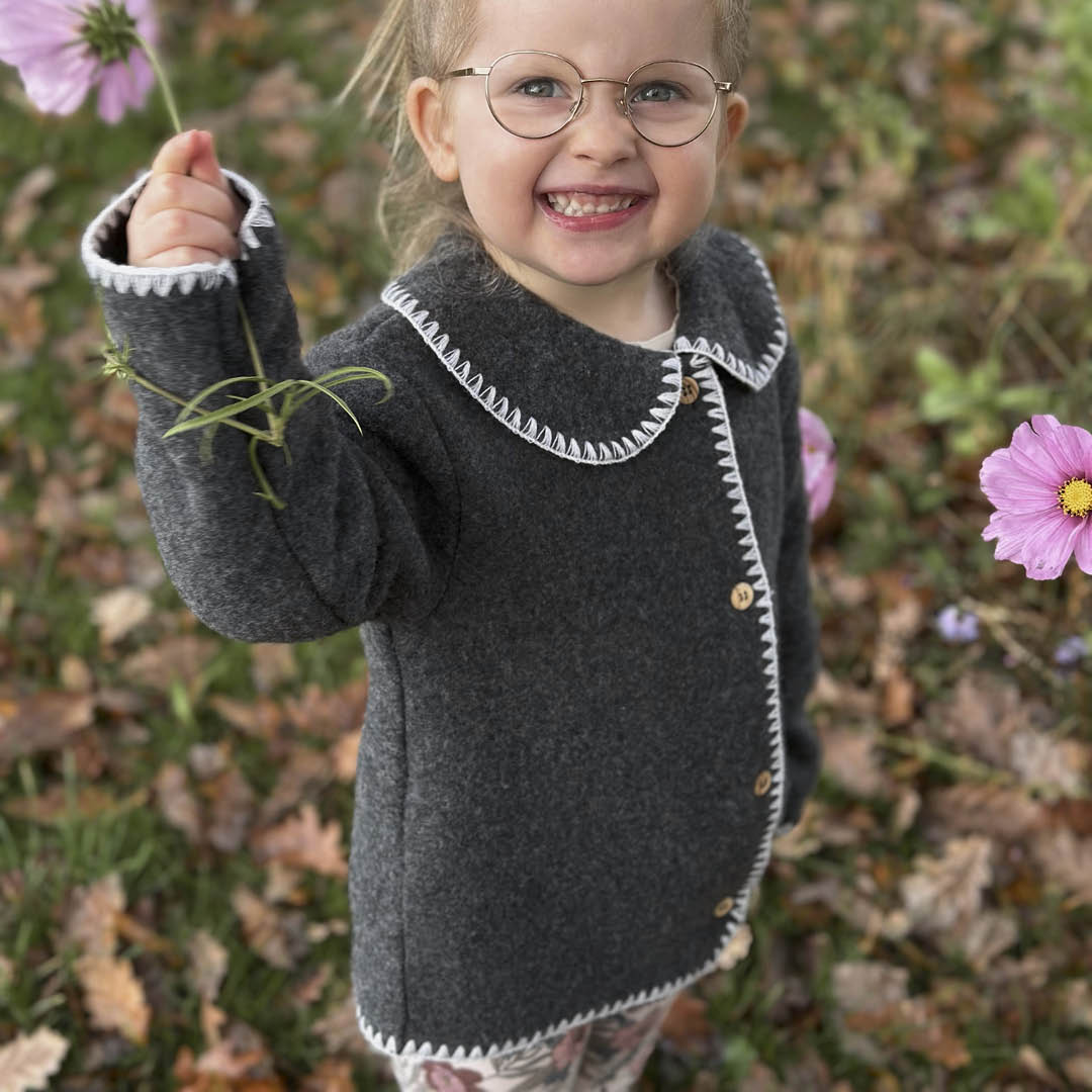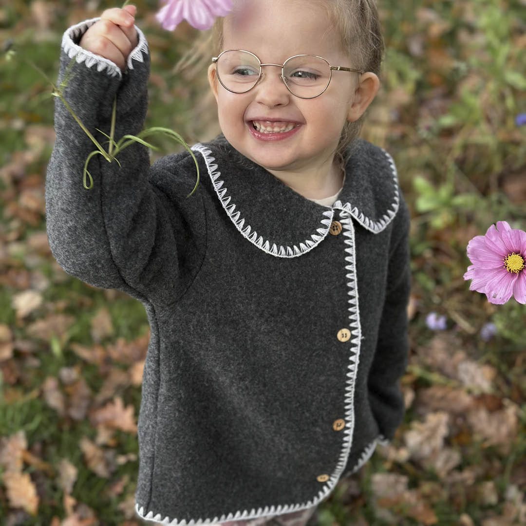 Soft and comfortable fleece jacket. The jacket has decorative blanket stitching on the edge.