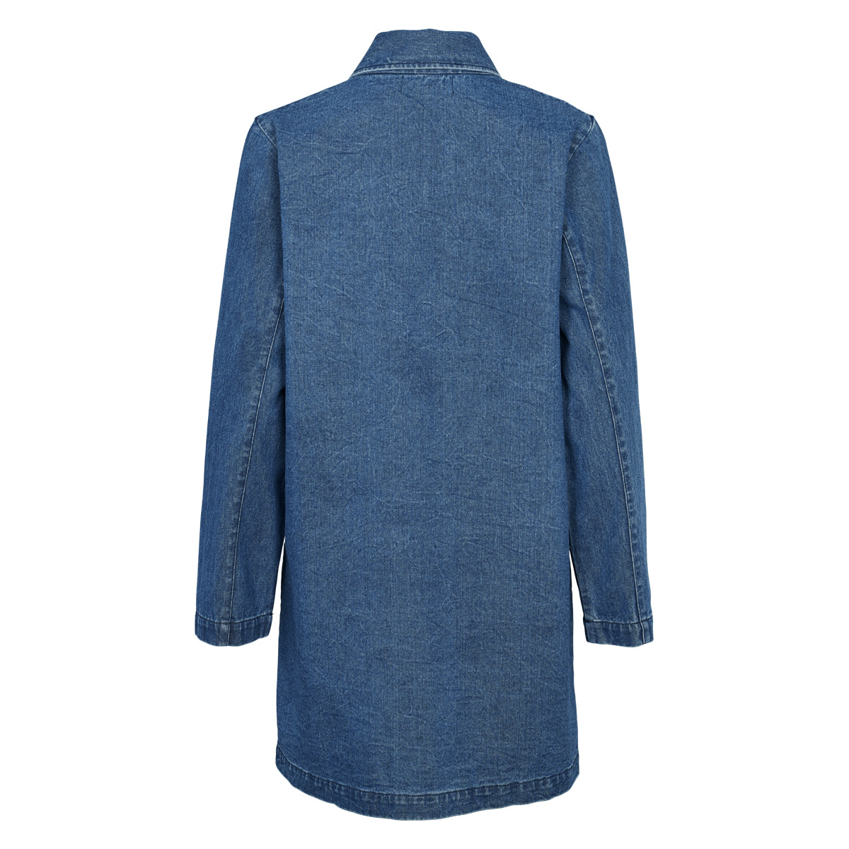 Super smart and comfortable denim shirt jacket with buttons and a decorative collar.