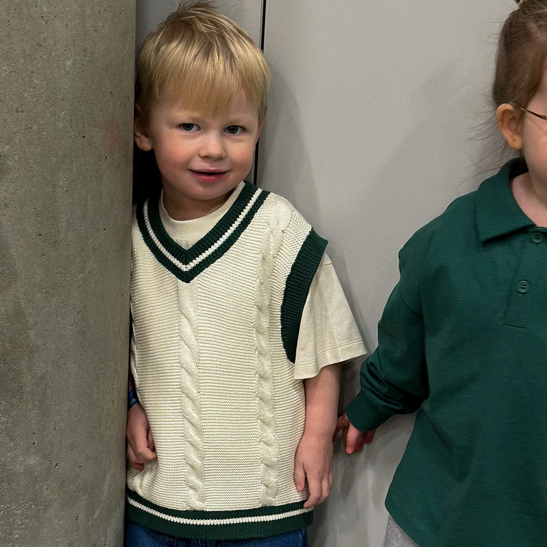 The vest is knitted in soft and organic knit in 100% cotton.