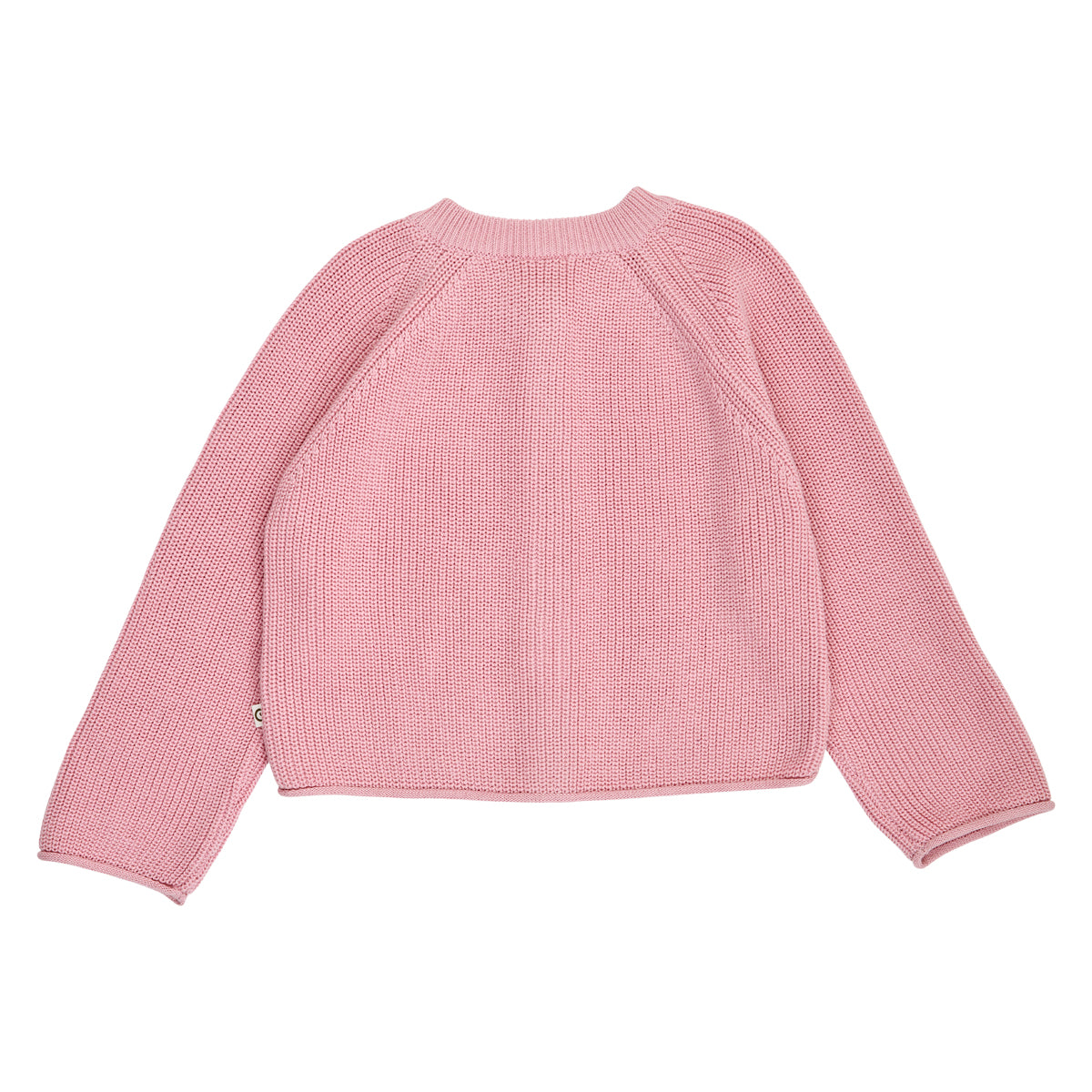 The cardigan has raglan and wide sleeves