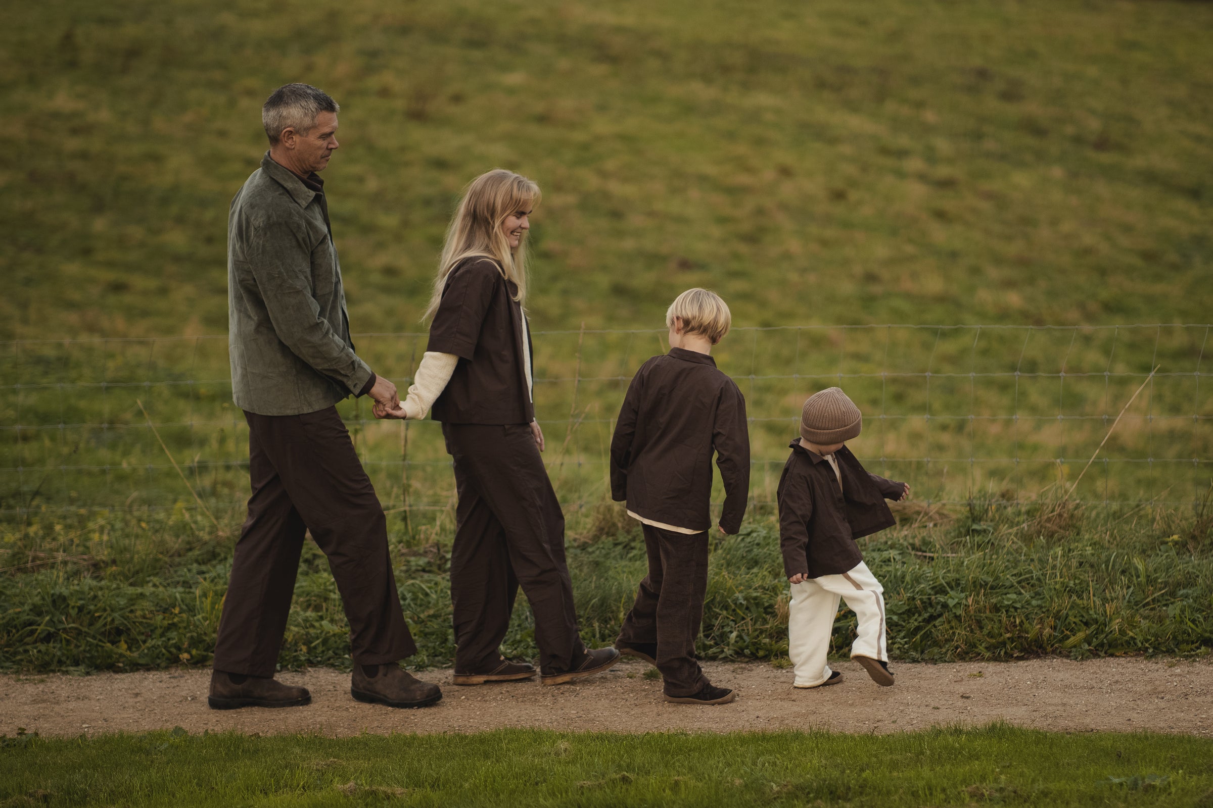 Choose calming colors, and classic cuts that flatter the whole family. Here, for example, you can match in our beautiful wool vests for both mom and baby—perfect for autumn walks, stroller trips, and cozy days indoors. You can also slip into a pair of our brown corduroy trousers and match with the whole family from Conservandum and Jam Generation. Create a calm, Nordic expression with soft basics, leggings, sweats, and knits in matching tones across sizes.