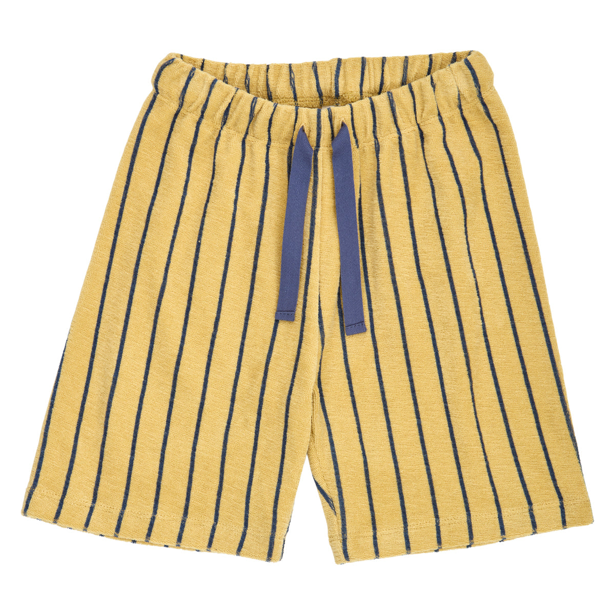 Super nice shorts with cute dark blue stripes on a sand-colored background.