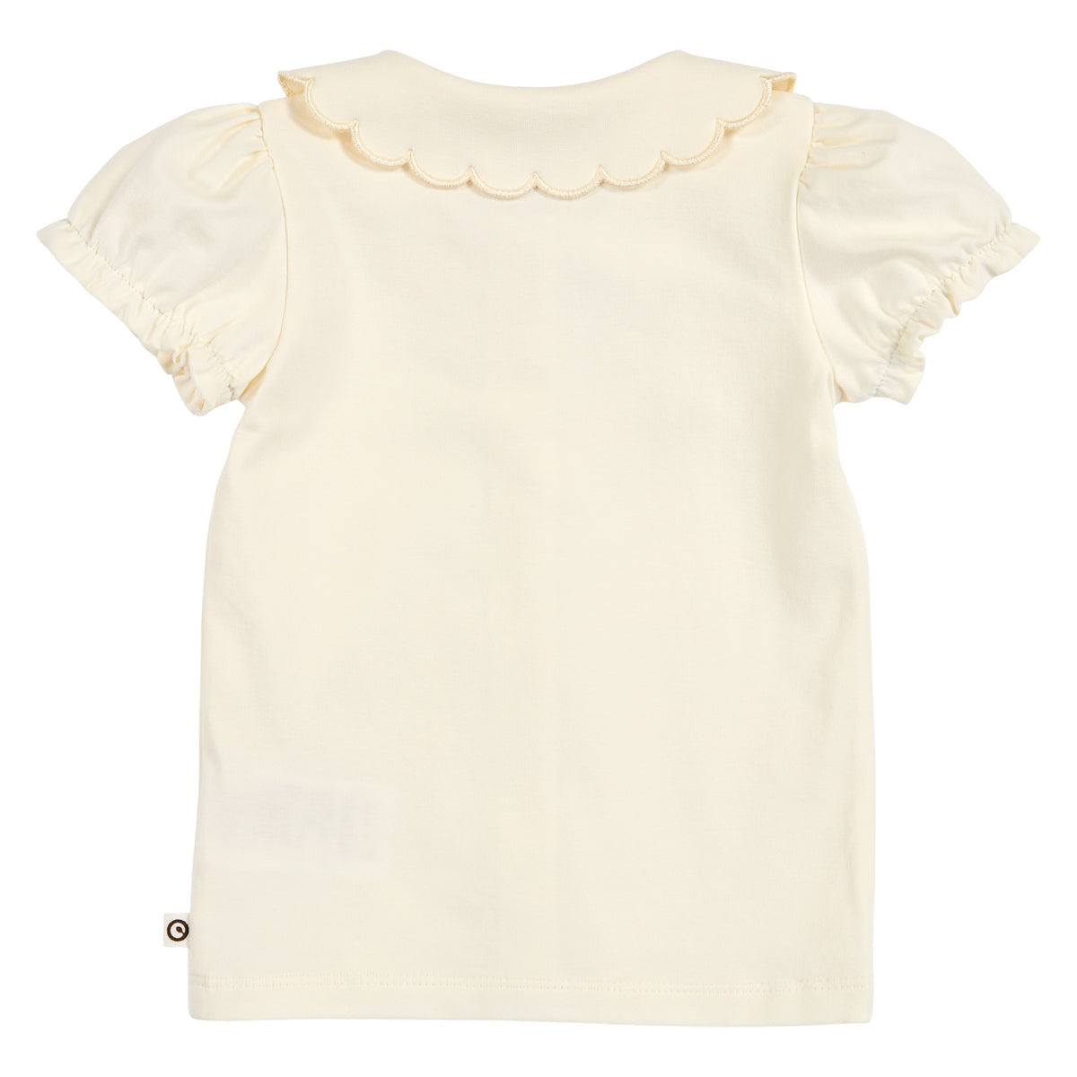 Super cute shirt top with a decorative collar and cute little puff sleeves.