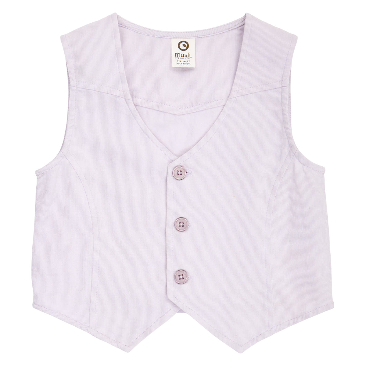 The vest is classically designed with button closure at the front.