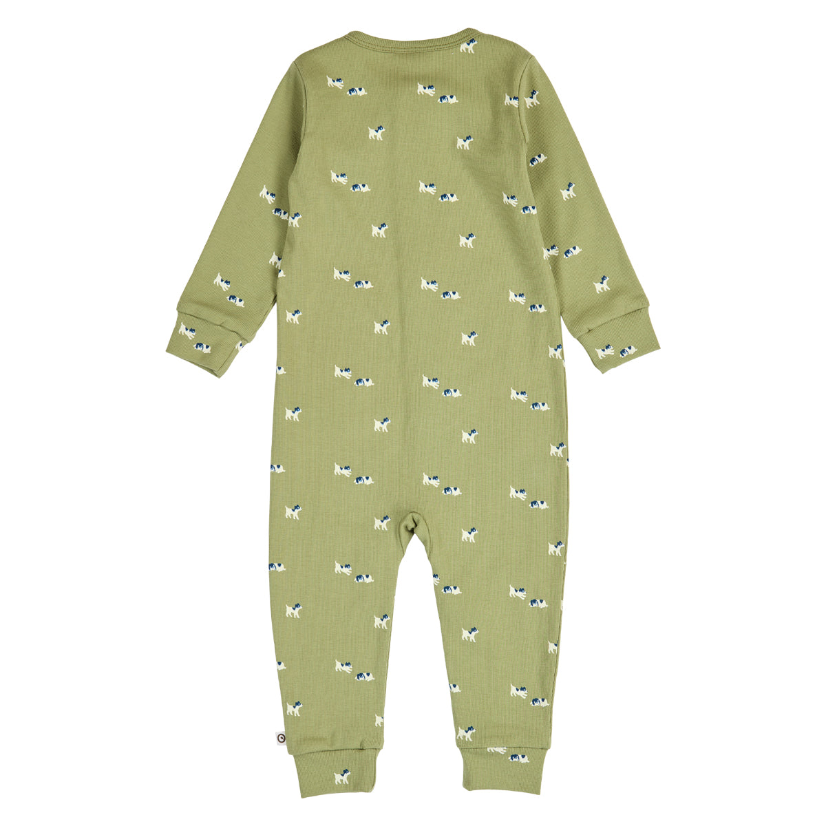 Cute and nice bodysuit with an all-over print of puppies playing and a nice green background.