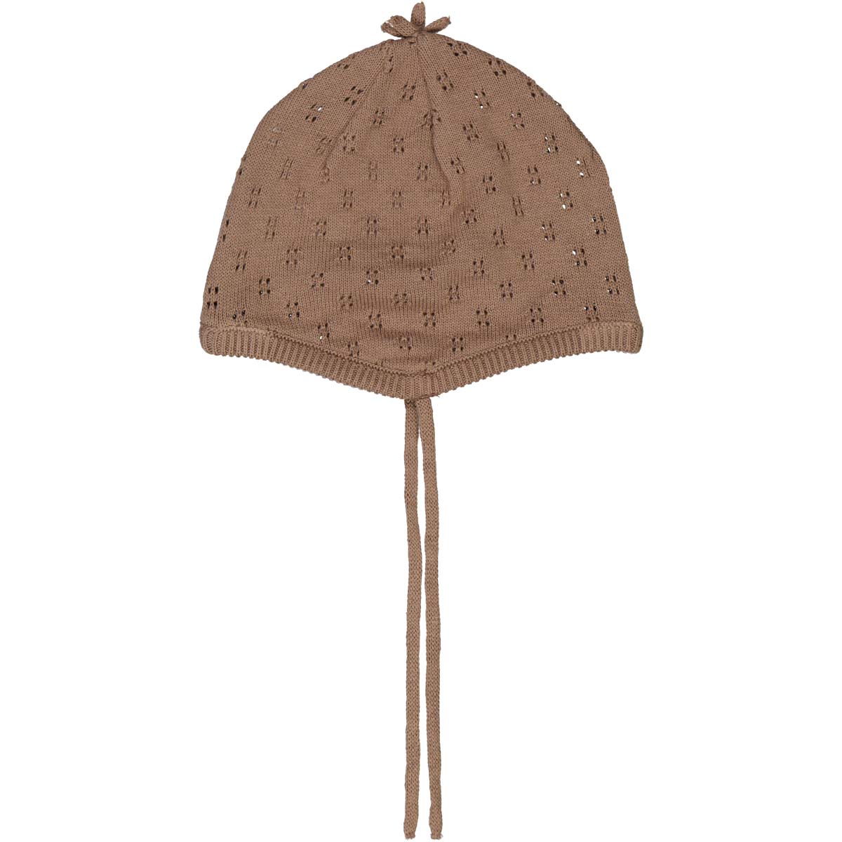 Cute baby hat in lovely knitted quality with a beautiful hole pattern.