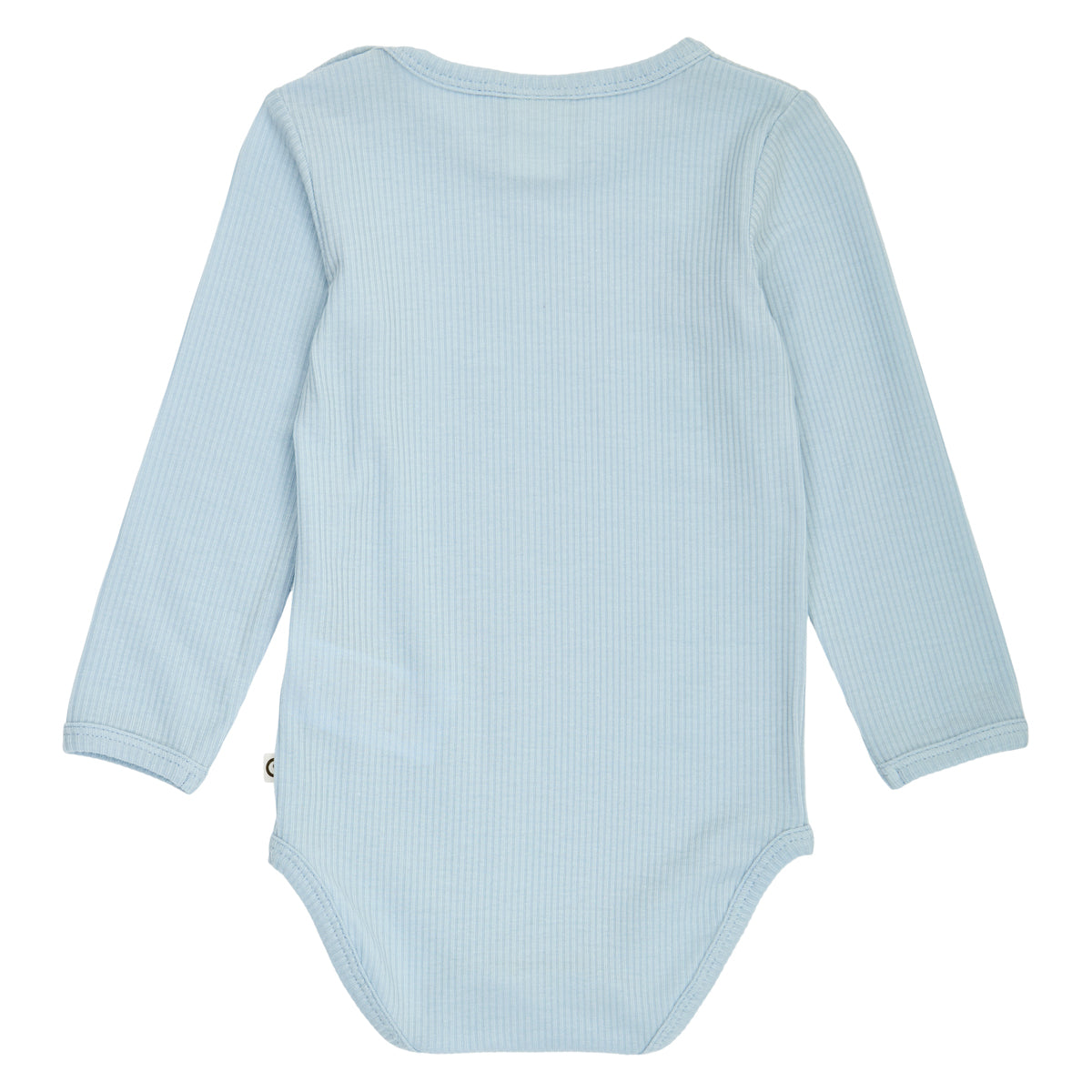The body has long sleeves and opens at the neck opening and at the bottom with snap buttons.