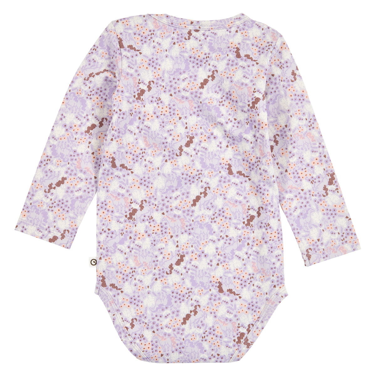 Sweet and pretty body with long sleeves and a cute all-over print of flowers and horses from the prairie.