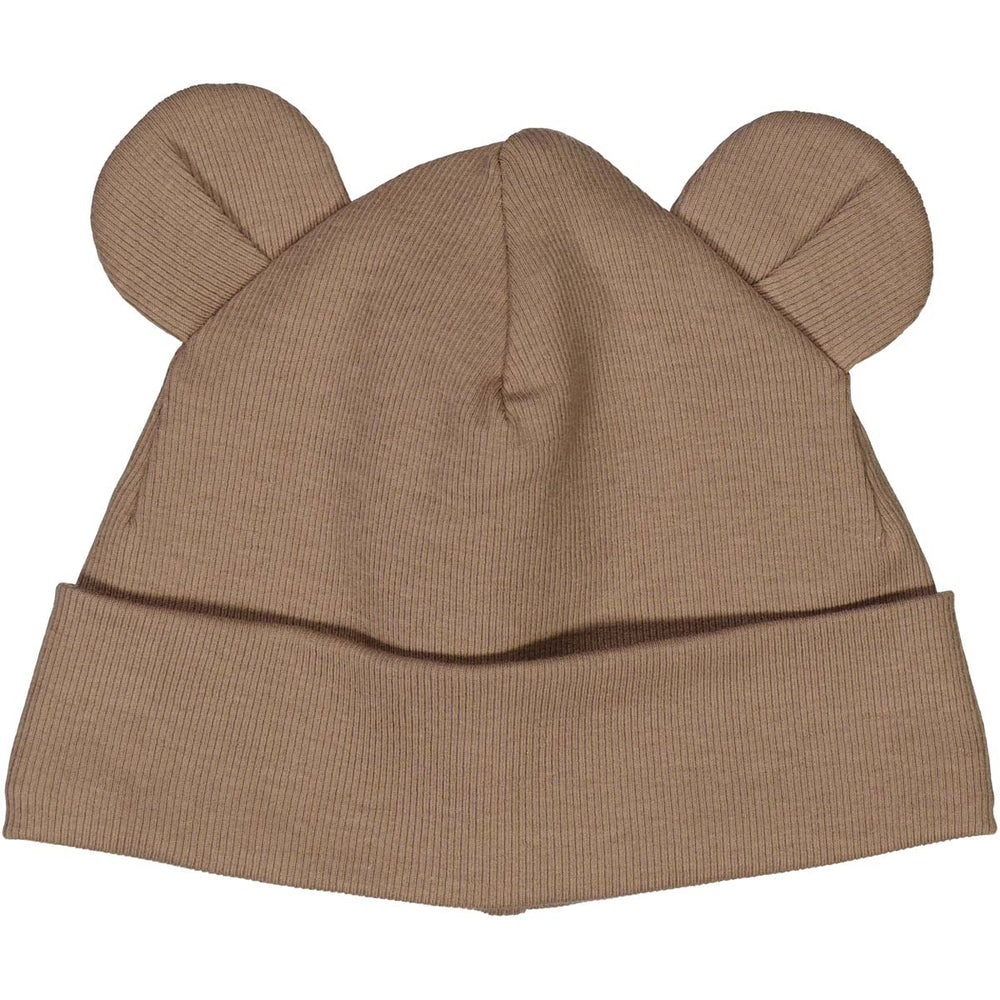 The hat has a folded edge and cute teddybear ears on top.