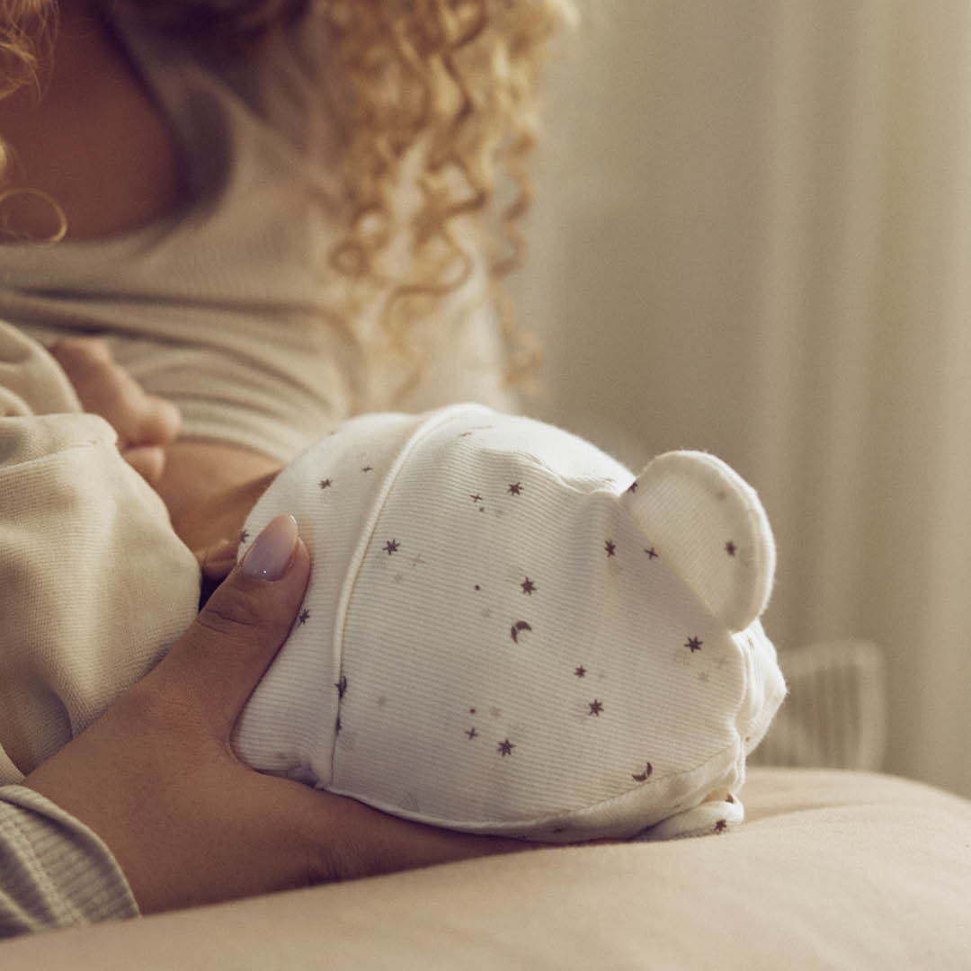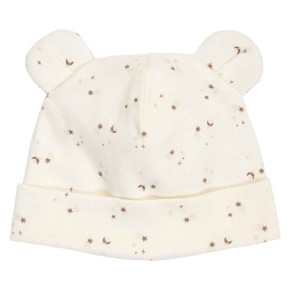 The hat has a folded edge and cute teddybear ears on top.