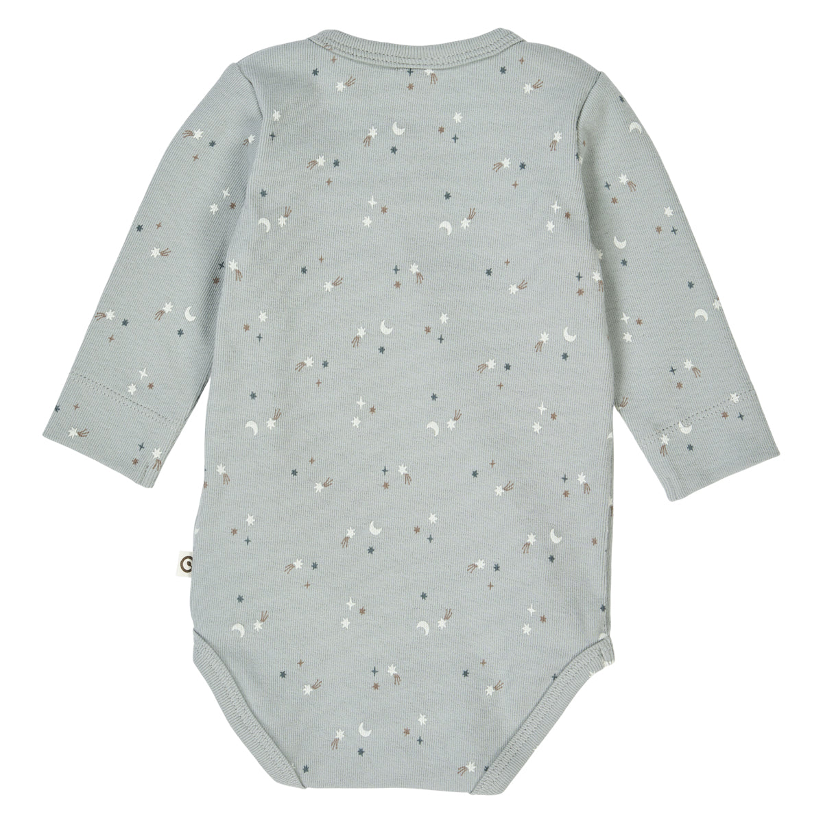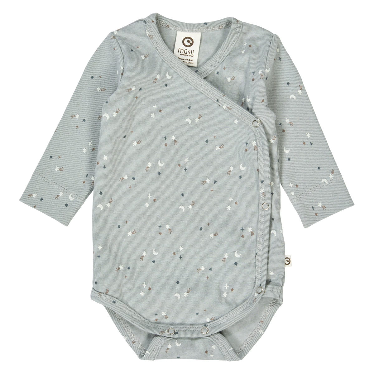 The body can be opened all the way up the front with snap buttons so it does not have to go over the baby\'s head.